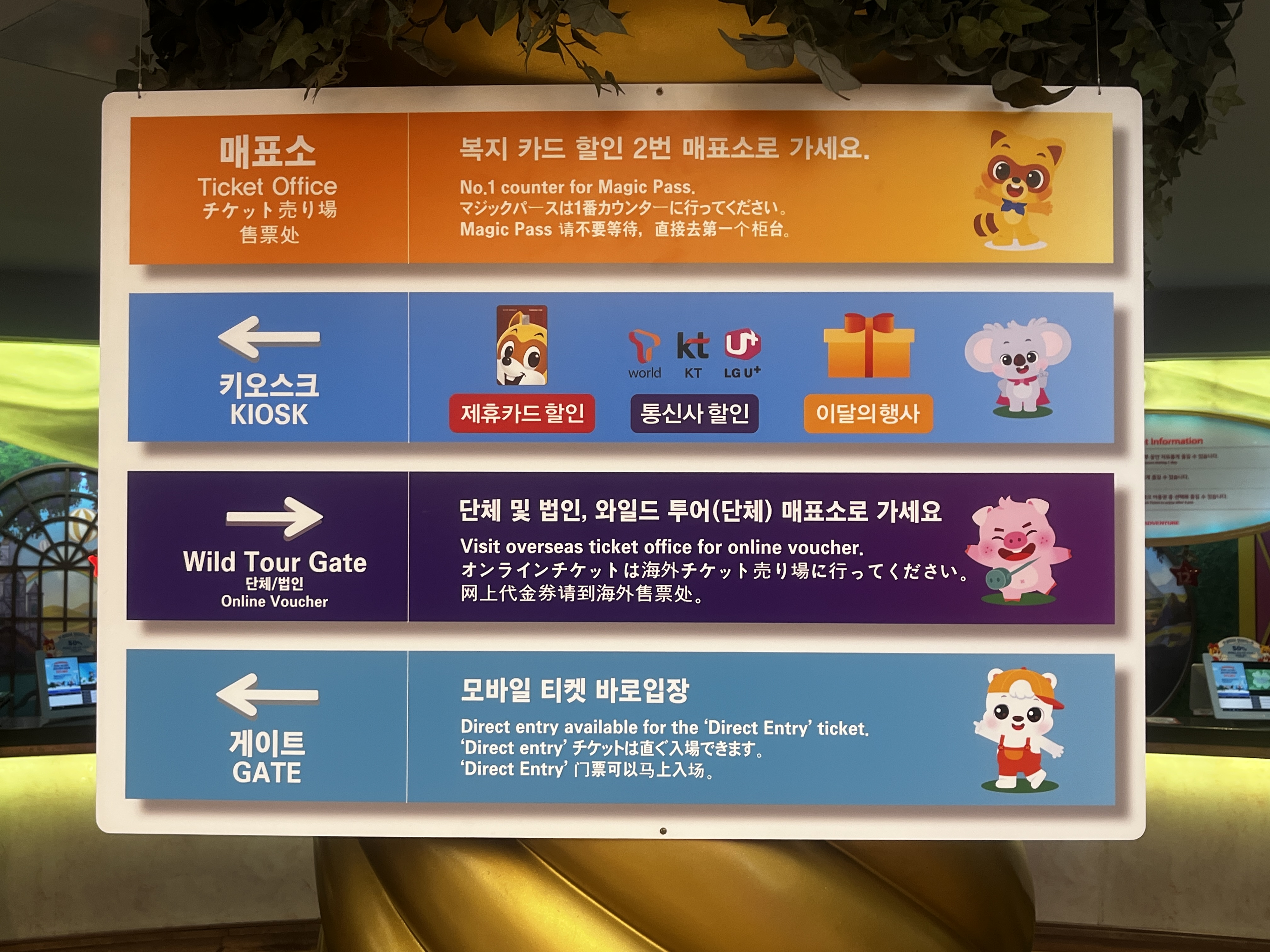 매표소에서 구매를 하셔야 하는 경우 정문 기준 양 옆의 매표소와 키오스크를 이용해서 입장권을 발급받으시면 됩니다.