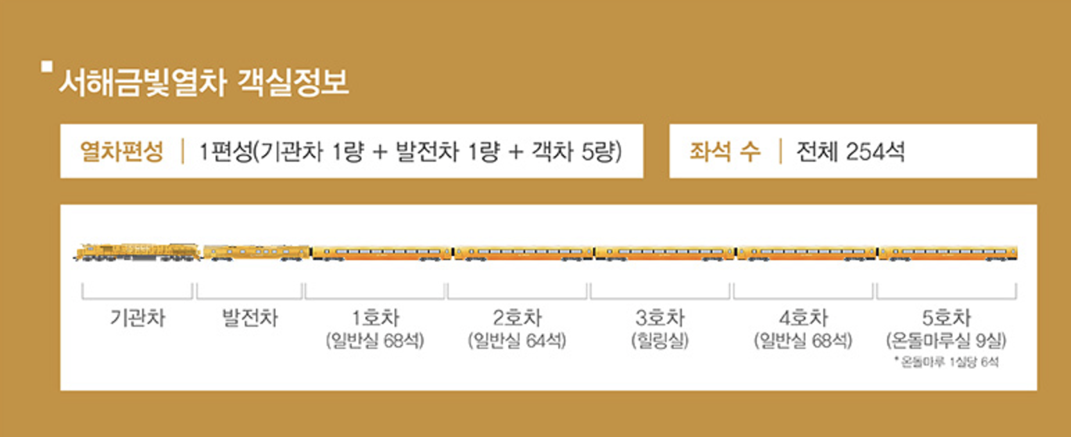 서해금빛열차는 세계최초 한옥식 온돌마루와 온천 족욕시설을 갖추고 있는 열차 입니다.